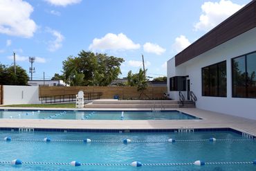 AquaChamps Swim School is a new 24,000 square foot commercial aquatic facility located in the city of Oakland Park, Florida. The project incorporates a 2,300 square foot main building, two handicap accessible outdoor swimming pools, and associated surface parking.